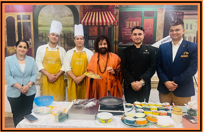 Swami Ji led a unique workshop at Taj Ambassador, Delhi, where chefs crafted “Spiritual Parathas.” Ingredients symbolized elements, turning cooking into meditation, the kitchen into a temple, and parathas into symbols of unity and divinity.